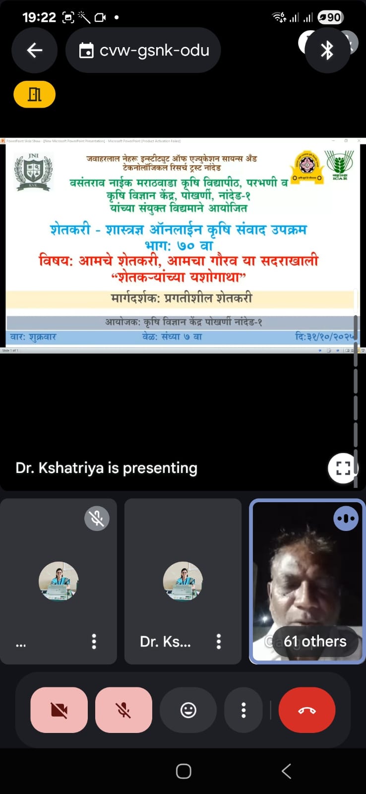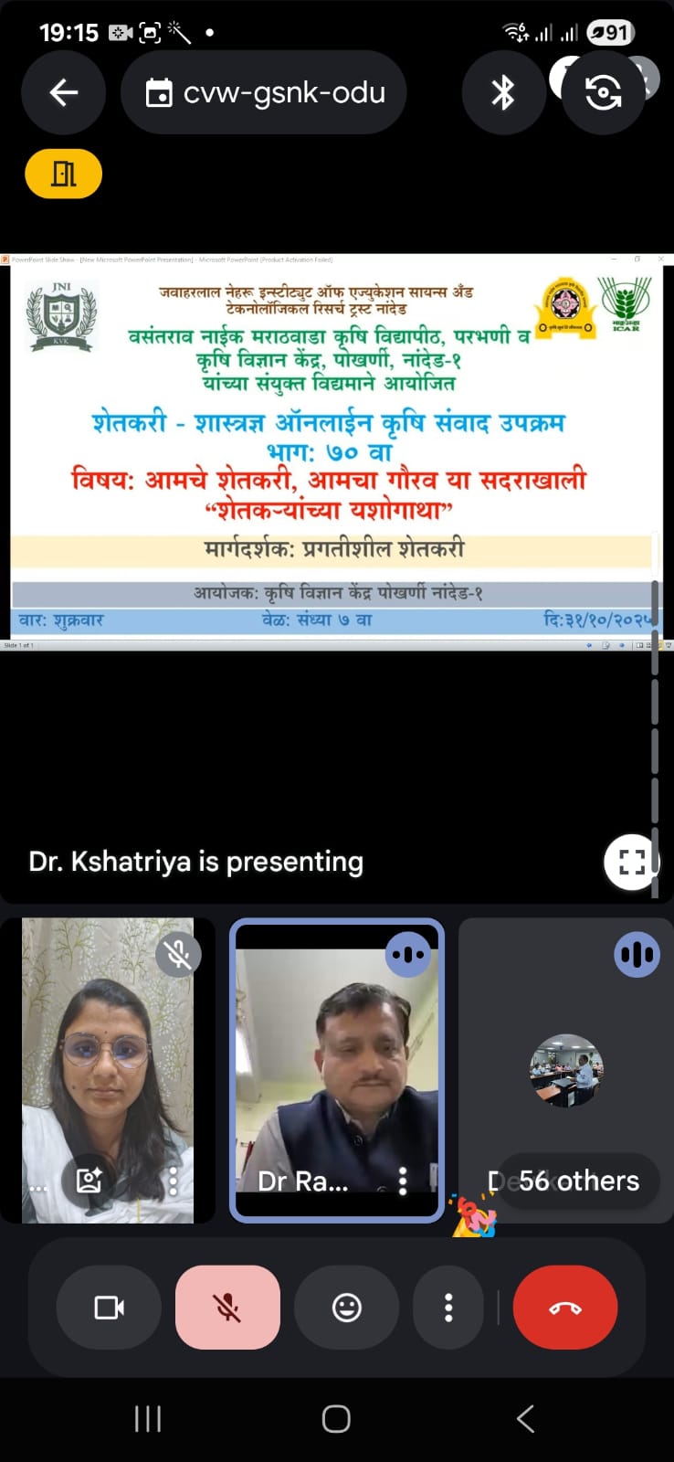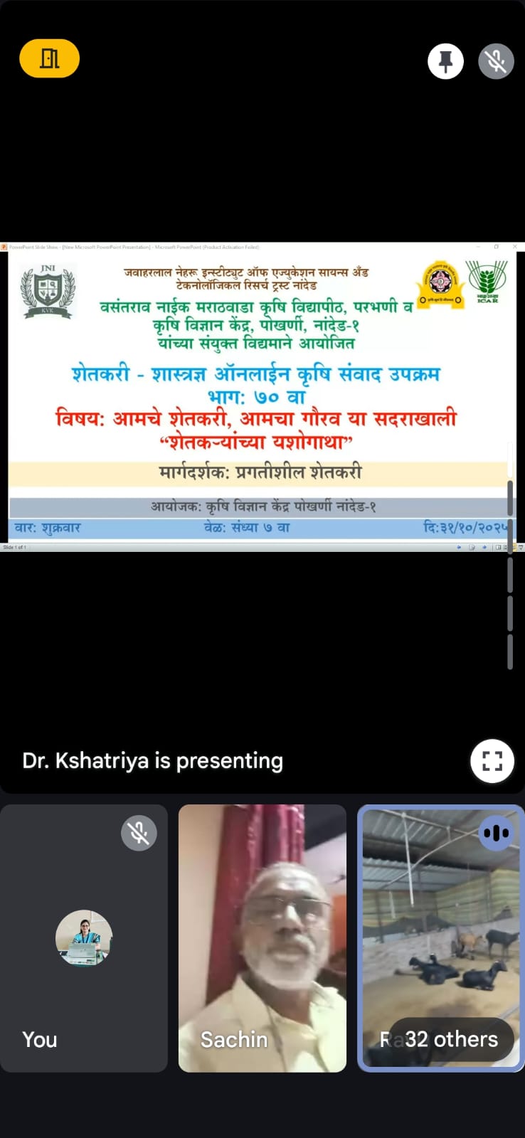 Farmers- Scientist Online interaction Episode 70 on dated 31/10/2025